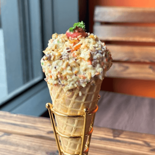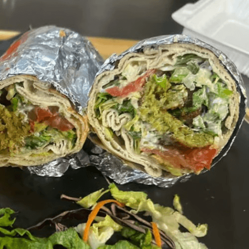 Mixed greens, pesto croutons, celery and organic hummus.