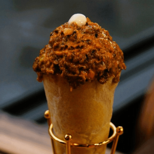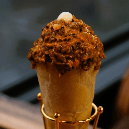 Fluffy bread, Shawarma Lamb, Lettuce, Side of French fries and special sauce on the top.